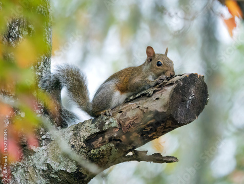 © Michelle Holton, Obraz premium brown squirrel climbing on a tree in the fall