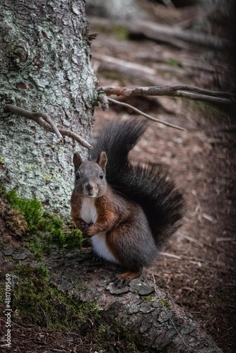 Fototapeta premium Brown Squirrel in Forest, Graubünden, Switzerland.