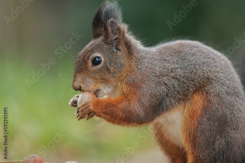 © Andreas Furil/Wirestock Creators, Fototapeta premium Brown squirrel on the ground with a blurry background