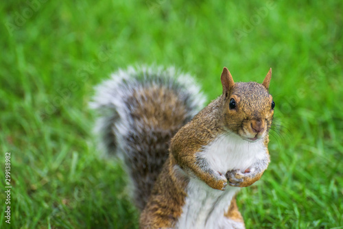 © frimufilms, Obraz premium Brown squirrel over green grass