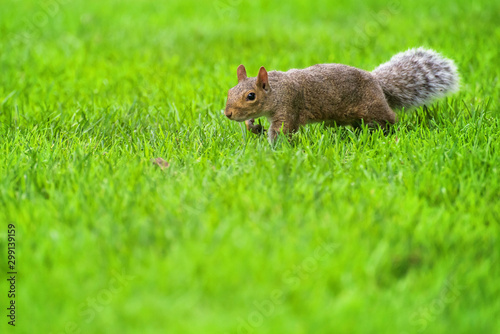 © frimufilms, Obraz premium Brown squirrel over green grass