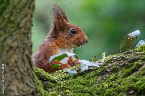 Fototapeta premium Brown squirrel perched on a tree branch