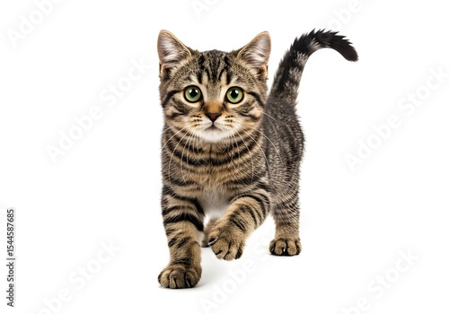 © Vector Silhoutte, Obraz premium Brown Tabby Kitten Walking Forward Isolated on White