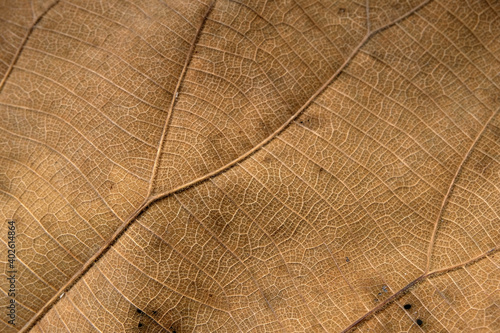 © paisan191, Fototapeta premium Brown Teak leaf close up