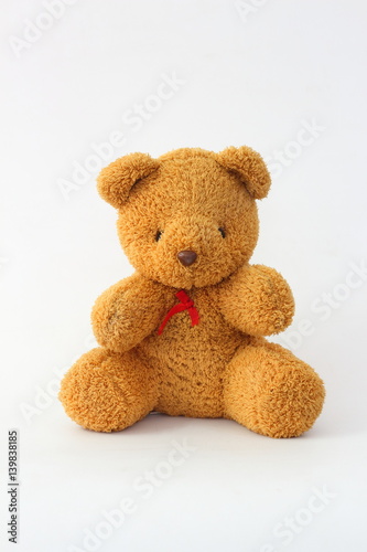 © Vichit, Obraz premium Brown teddy bear on a white background.