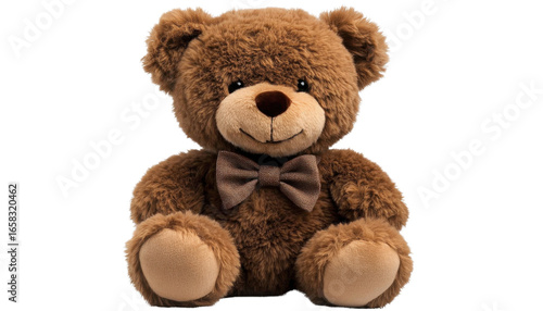 Obraz premium Brown teddy bear with bow tie isolated on transparent background.