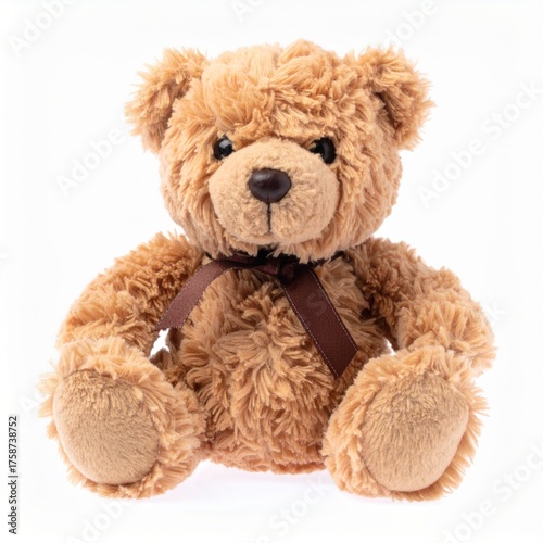 © Pure Imagination, Fototapeta premium Brown Teddy Bear with Dark Ribbon Isolated on White Background