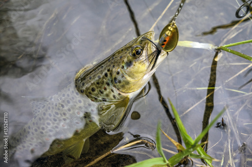 © Виталий Волосевич, Fototapeta premium Brown trout caught lure