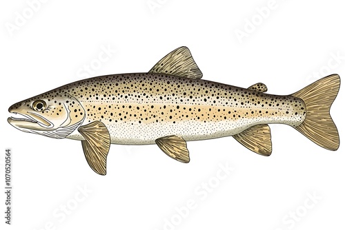 © NatthaphonSiri, Obraz premium Brown Trout Fish Illustration.