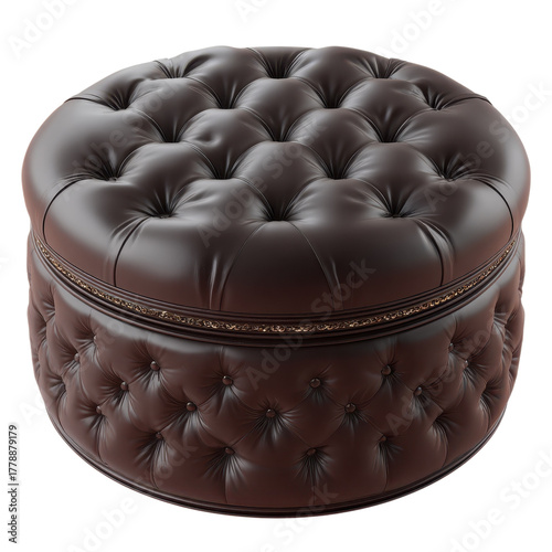 © Jawad, Obraz premium Brown tufted leather ottoman pouf with zipper isolated on Transparent Background