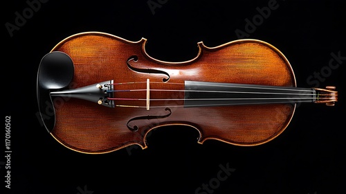 © rashyn, Fototapeta premium Brown violin closeup on black backdrop.