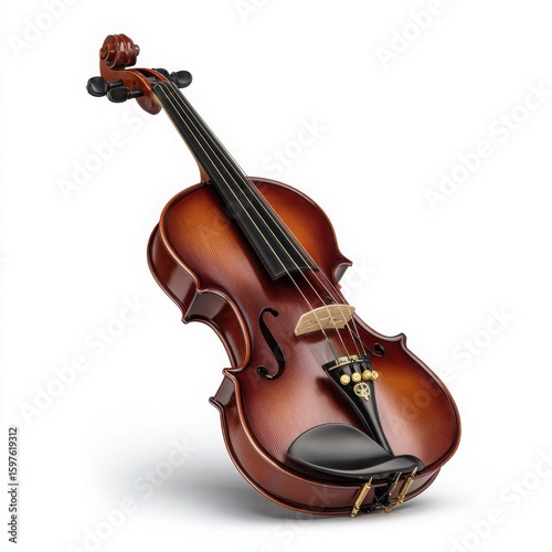 © AFSONA, Fototapeta premium Brown violin on a clean white background musical instrument