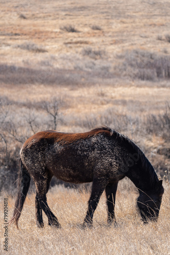 © Chris, Fototapeta premium Brown Wild Horse Grazing in Theodore Roosevelt National Park in Spring