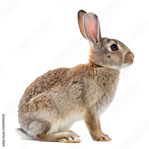 © woopics, Obraz premium Brown wild rabbit sitting alert in nature isolated on a transparent background