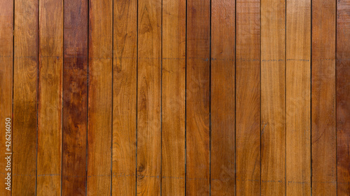 © zhikun sun, Naklejka premium brown wood texture. Background dark old wooden panels.