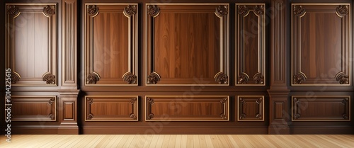 © IbragimovN, Fototapeta premium Brown Wood Wall Panels with Classic Interior for Vintage Studio Design