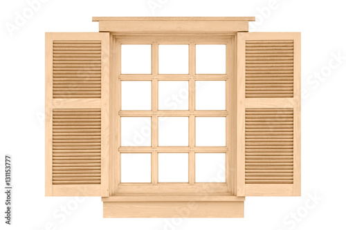 Obraz premium Brown wood window isolated on white background