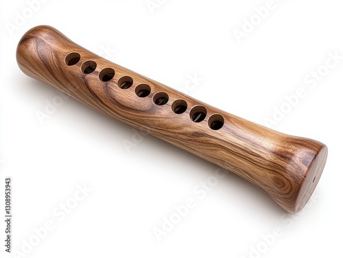 Naklejka premium Brown Wooden Flute with Holes on White Background