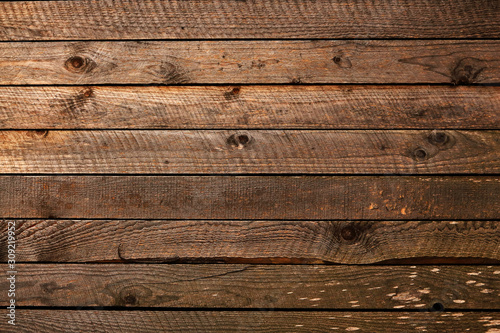 Obraz premium Brown wooden plank table top wall backdrop