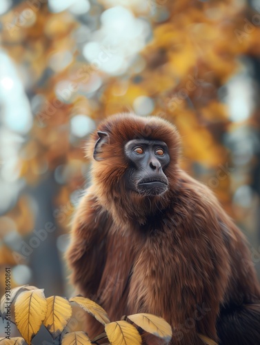 © Nataliia S., Obraz premium Brown woolly monkey, Lagothrix lagotricha, gazing in the tropical forest