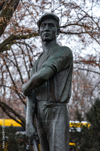Fototapeta premium Broze statue of the Proletarian Hero on Alexanderplatz, Berlin, Germany