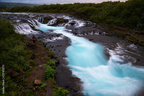 Naklejka premium Bruarfoss waterfall. The Blue waterfall in Iceland.