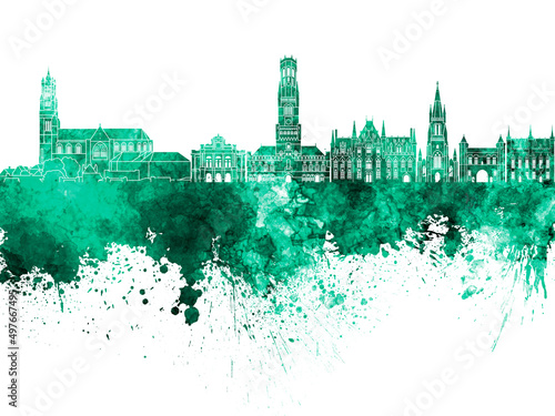 Obraz premium Bruges skyline in watercolor background