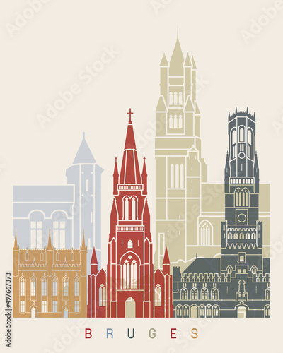 © Paulrommer, Fototapeta premium Bruges skyline poster