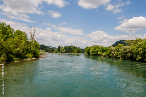 Fototapeta premium Brugg, Wasserschloss, Flusslandschaft, Aare, Fluss, Limmat, Reuss,...