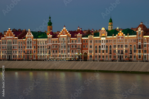 Obraz premium Brugge embankment in night illumination. Yoshkar-Ola. Republic of Mari El
