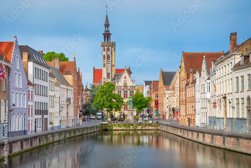 © bbsferrari, Obraz premium Brugge, or Bruges, Belgium. View of Spiegelrei canal in the morning