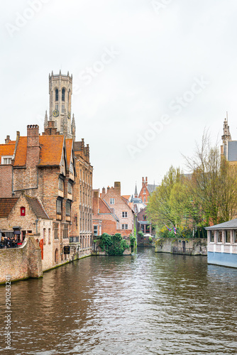 © ilolab, Fototapeta premium BRUGIA, BELGIA - 13 kwietnia 2018: Widok ulicy w centrum miasta w Brugii, Belgia