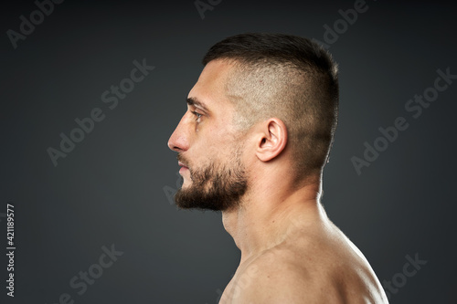 Obraz premium Bruised fighter on gray background