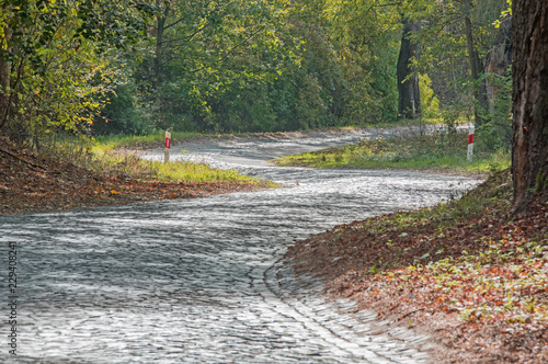 © boguslavus, Obraz premium Brukowana droga przez las.