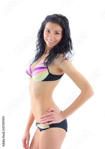 © PhotoStar, Naklejka premium brunette attractive woman in swimsuit on white background