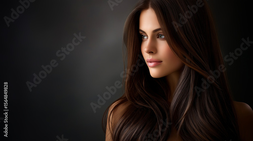 © Kateryna Arkhypova, Fototapeta premium Brunette Beauty: Glossy Hair in Studio Light