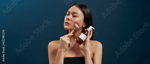 © Svitlana, Fototapeta premium Brunette with cosmetic devices in the studio