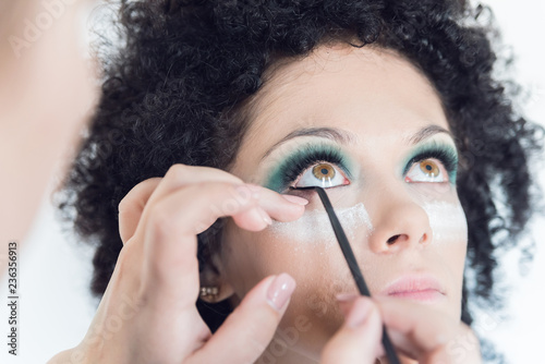 © focusandblur, Obraz premium Brunette with green eyes doing makeup