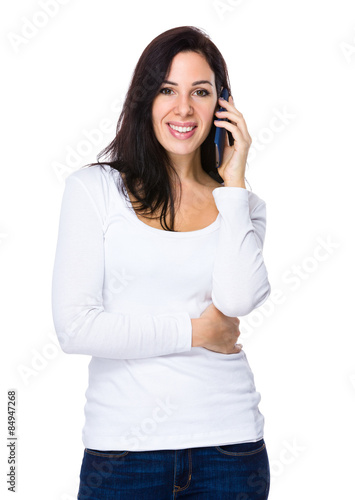 Fototapeta premium Brunette woman talk to mobile phone