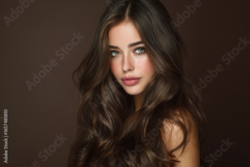 Fototapeta premium Brunette woman with lovely long hair and a stylish hairstyle