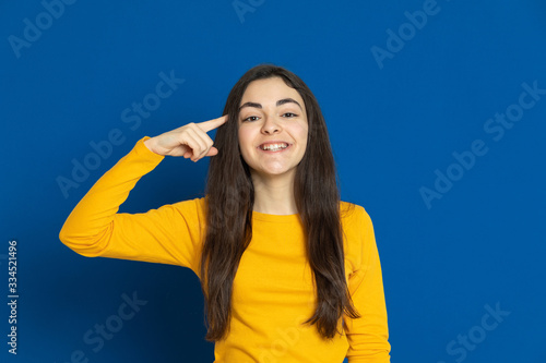 Fototapeta premium Brunette young girl wearing yellow jersey