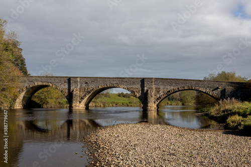 © Matt, Fototapeta premium Brungerley bridge, Clitheroe. Large stone bridge over the river Ribble with reflections in the water