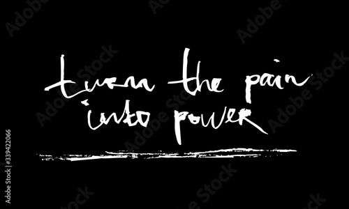 © Alexandr Butylin, Fototapeta premium Brush calligraphy turn the pin into power. Black and white vector illustration. Can be used in social networks, for articles, publications, postcards, print, poster, sticker, on a T-shirt.