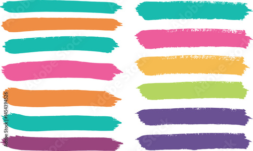 Obraz premium Brush line and stroke vector. Color, pencil, marker, crayon paint texture highlight. Pen, chalk hand drawn underline, mark. Line, stroke, stripe, shape scribble.