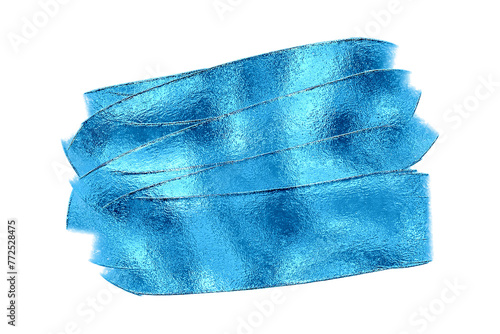 Fototapeta premium Brush stroke with blue shiny metallic paint. Metal texture, frame.