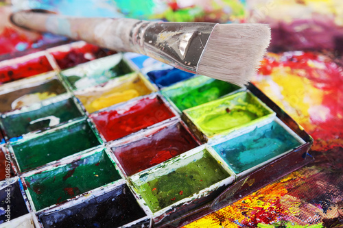 © Pixeltheater, Fototapeta premium Brush with paintbox