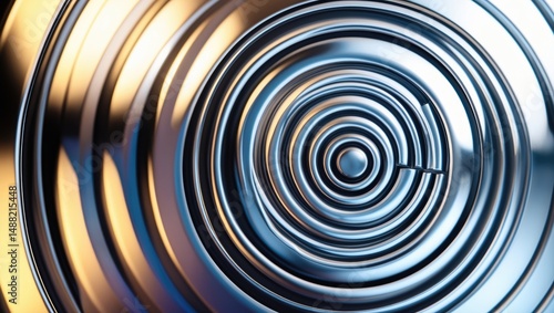 Obraz premium Brushed chrome surface with circular patterns on a metallic background.