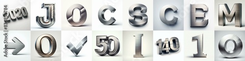 © vector_master, Fototapeta premium Brushed steel metal Lettering Typeface. AI generated illustration