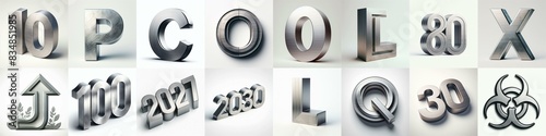 © vector_master, Fototapeta premium Brushed steel metal Lettering Typeface. AI generated illustration
