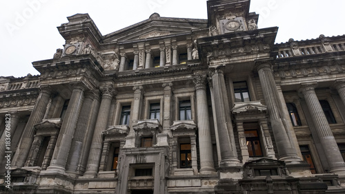 © 4kclips, Naklejka premium BRUSSELS, BELGIUM - NOVEMBER 26, 2025 - Palace of Justice, a grand architectural landmark against an overcast sky